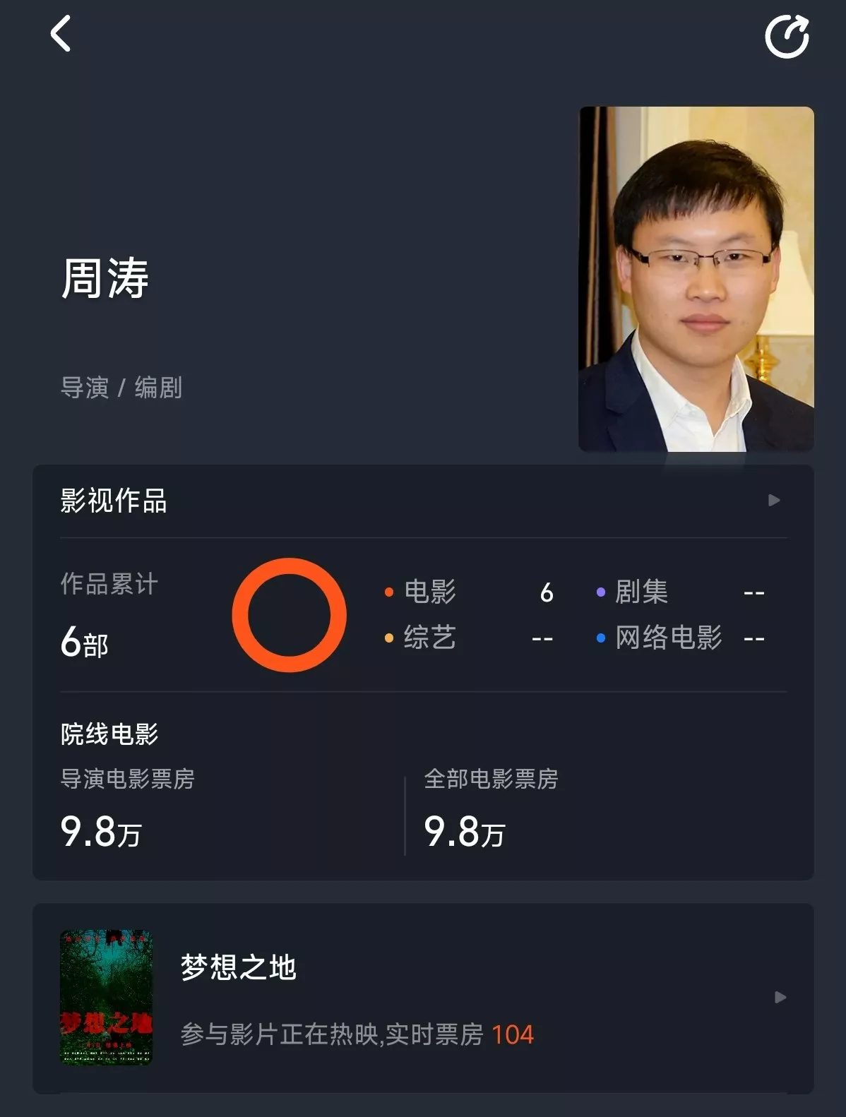 但在现实中,该电影各项数据先让人感到“恐怖”。猫眼专业版、灯塔以及淘票票等内地电影票务平台的数据显示,《梦想之地》在2025年6月上映,随后疑似因票房惨淡而遭遇撤档,并于2026年3月20日重映。截至4月16日,该电影仅卖出3张电影票,总票房定格在104元,片方最终分账到手仅35元。