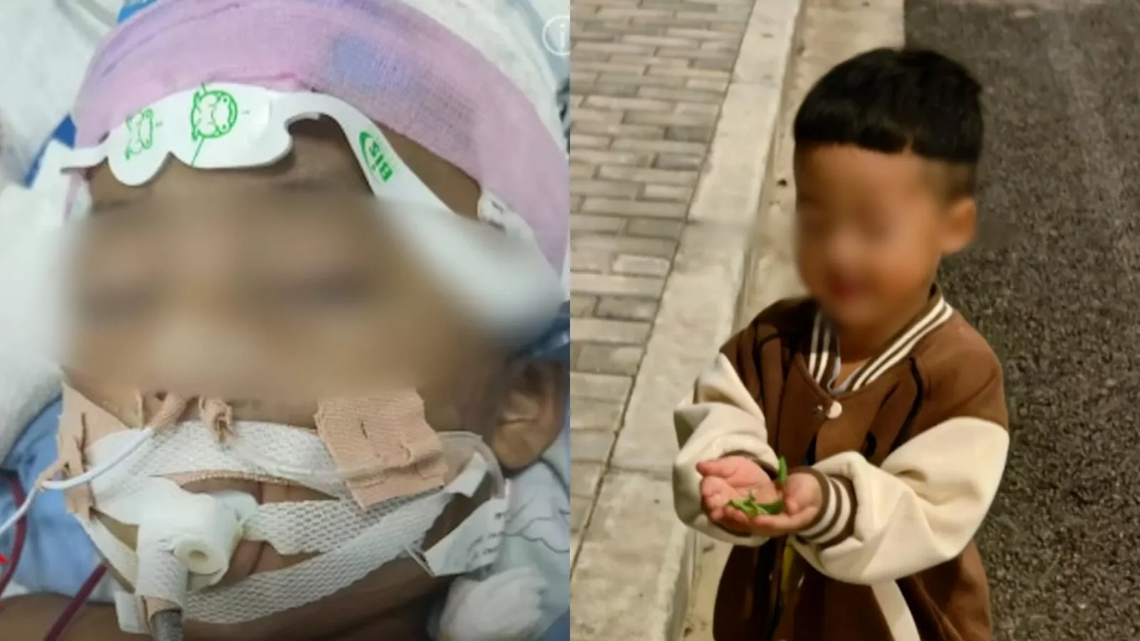 上海3岁男童出事前一个月的视频中,头部有发红伤痕。