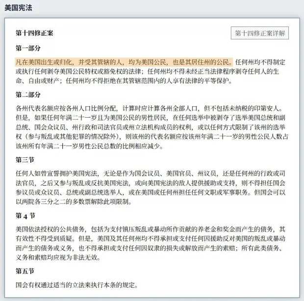 2025年1月20号,在回归白宫的第一天,特朗普就签署了一项名为《保护美国公民身份意义和价值》的行政命令,宣布非法移民以及持临时签证者在美国生下的孩子,都不能再自动成为美国公民了。
