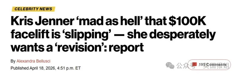 卡戴珊太后砸百万拉皮,不到1年就翻车英国报姐