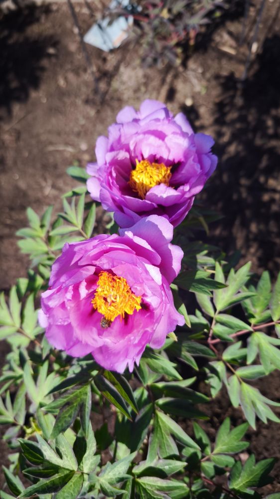 花瓣没有那么多, 也就三到四层。 虽然比原始的单层紫斑牡丹复杂些, 可是还是不够复杂啊。 而且露出金黄的花蕊, 花蕊根部,确实有明显的紫斑。 这点确实是西北牡丹的特点。