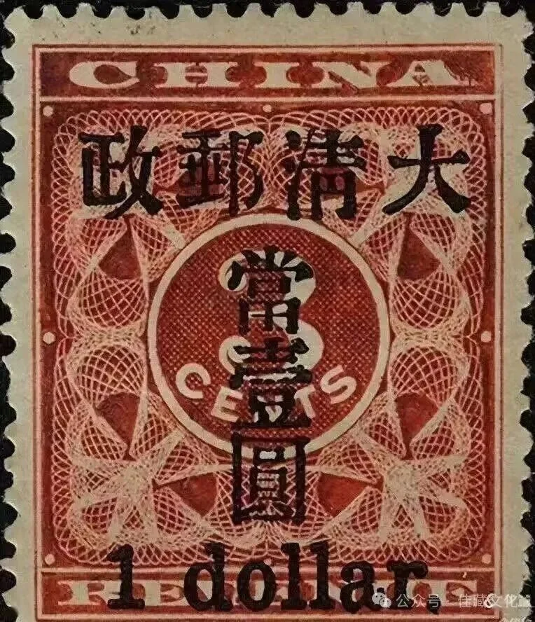 原是海关红印花税票,后加盖改作邮票,“小字”版存世仅31枚,有“华邮之王”之称。2025年嘉德拍卖单枚成交价近300万元,长期位列清代珍邮榜首。