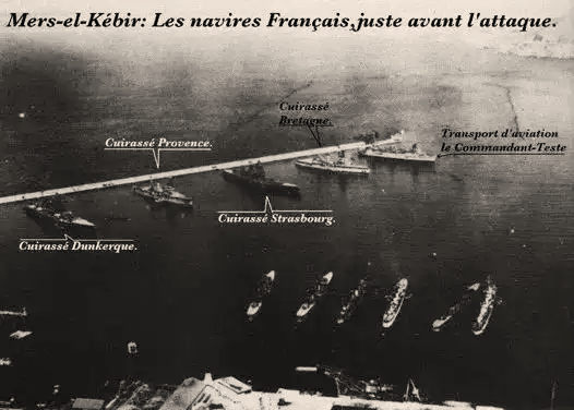 看到达尔朗这种反应,6月24日,英国海军将停泊在英国港口的法国军舰强行接管了。第二天,法国军舰黎塞留号突然离开了非洲塞内加尔的达喀尔港。黎塞留号是当时欧洲最先进的战列舰。英国人在得知之后立即下令英国海军出动,务必找到黎塞留号。结果找了一整天也没有找到。27号,黎塞留号自己回来了。即便如此,英国人也吓得够呛,认为必须抓紧时间解决法国舰队!