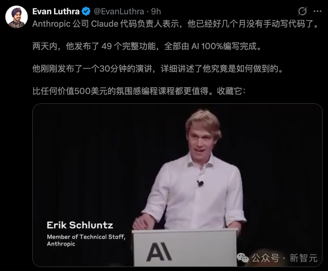 Claude Code负责人Boris Cherny今年1月公开表示,Anthropic「几乎100%」的代码由AI编写。