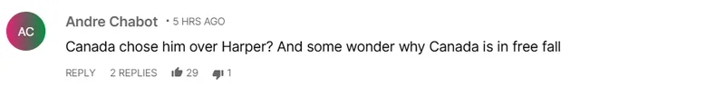 “加拿大选择了他,而不是哈珀。还有人不明白为什么这个国家正在走向衰退。”