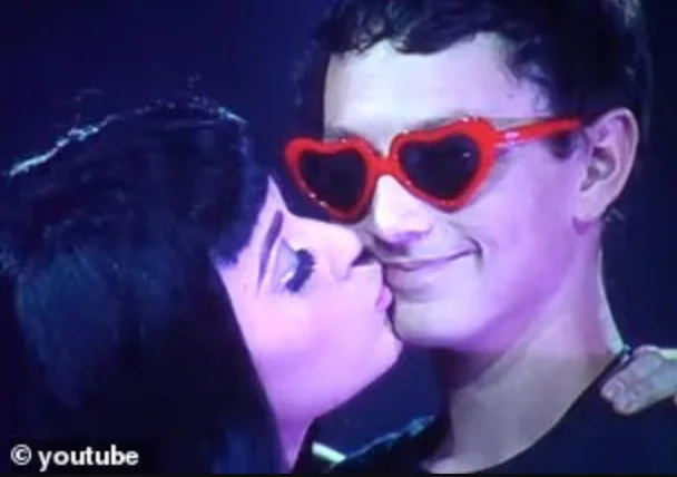 不仅如此,另一段演出时的录像显示,她和一个自称罗伯特的少年粉丝在台上互动时,竟然俯身亲吻了这位粉丝的嘴唇。