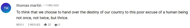 “想到我们竟然把国家的命运交到这样一个不堪的人手中——不是一次,不是两次,而是三次。”