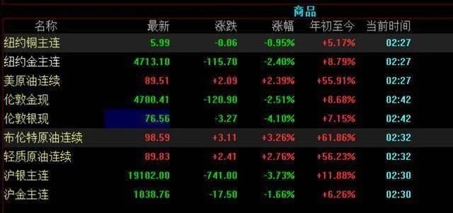 受谈判破裂预期影响,截至发稿,现货白银日内跌幅达4%,现报76.52美元/盎司;现货黄金下跌约100美元,现报4720.18美元/盎司,跌幅2.09%。而能源方面,布伦特原油涨近3%,逼近100美元/桶,美股标普500指数转为小幅下跌,欧洲股市普跌。