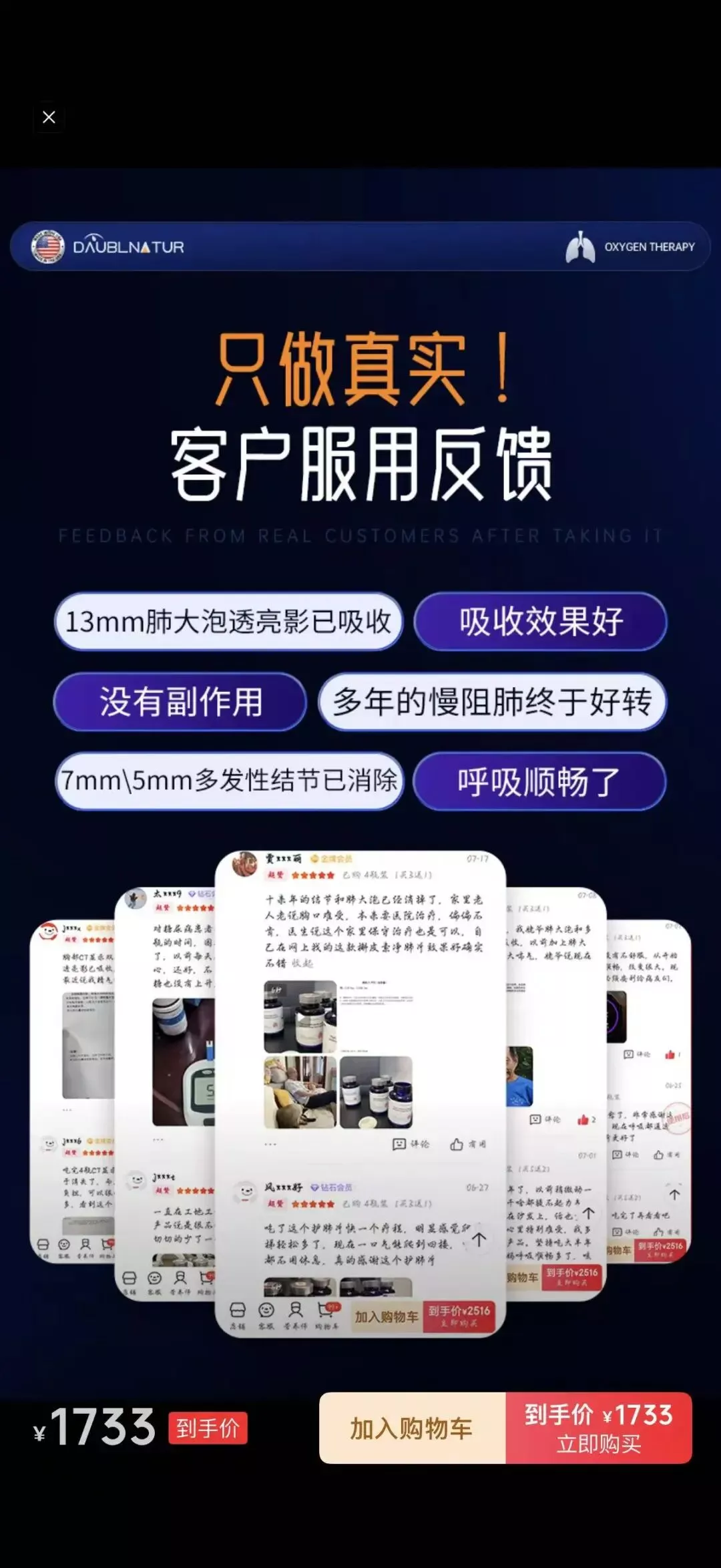 在我看来,这件事与董宇辉带货优思益有相似之处:都是打着海外进口产品的旗号进行虚假宣传;但性质恶劣多了:董宇辉带货的优思益叶黄素只是利用智商税“谋财”,但拿“慢阻肺”做噱头就是“害命”(危害生命健康)。