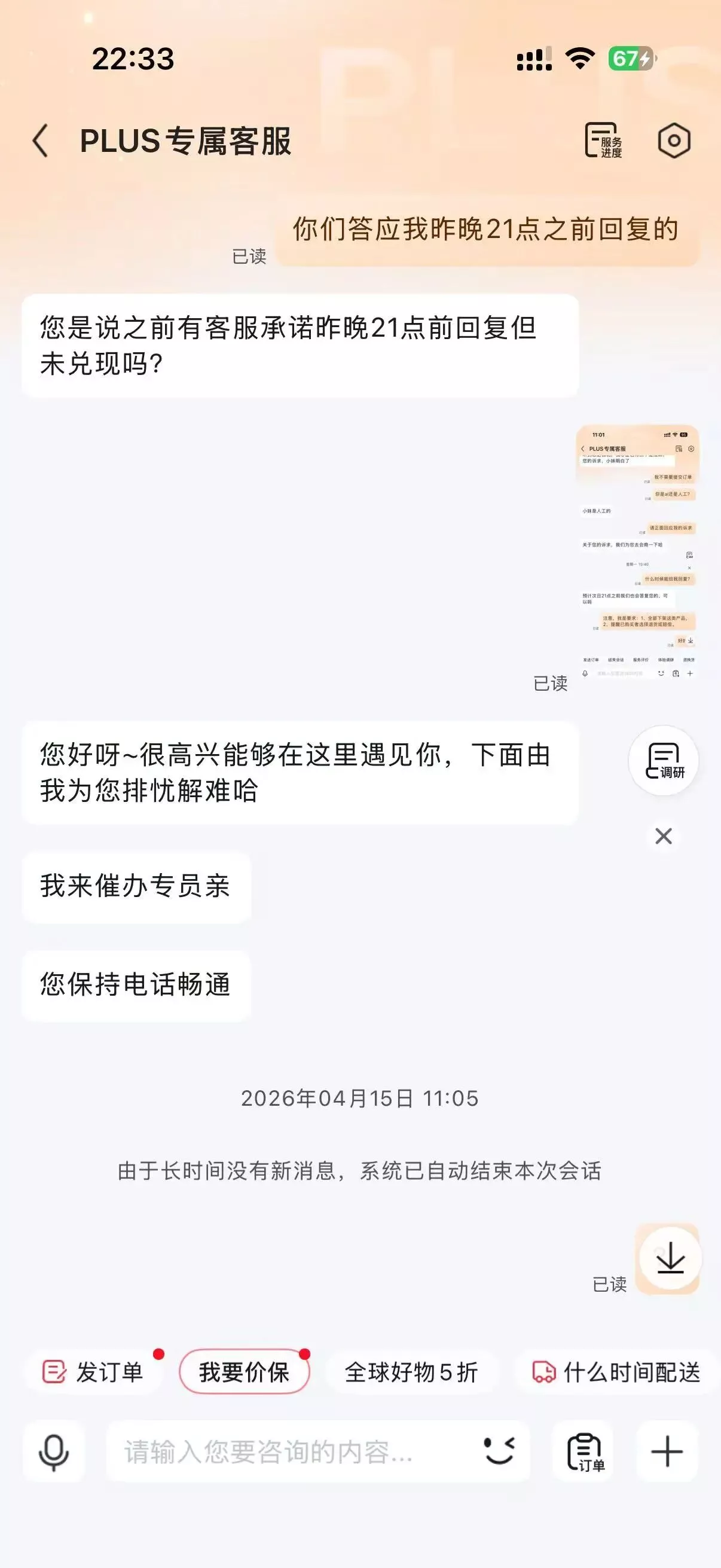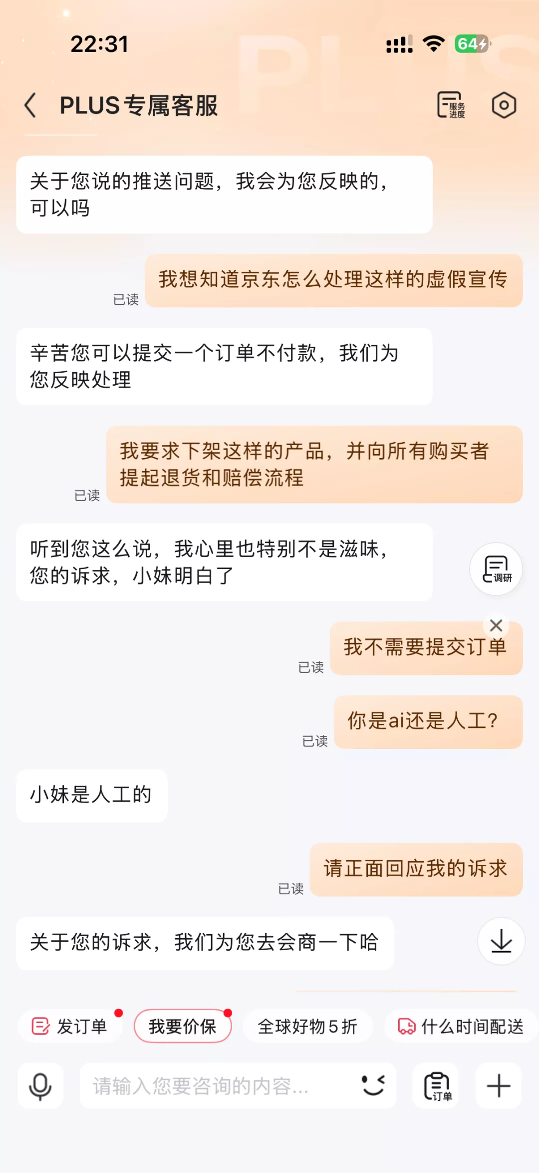 4月12日我发了开头那条朋友圈,但我也不能默认就会被京东的看到并反馈上去,所以13日我通过京东客服投诉,如下: