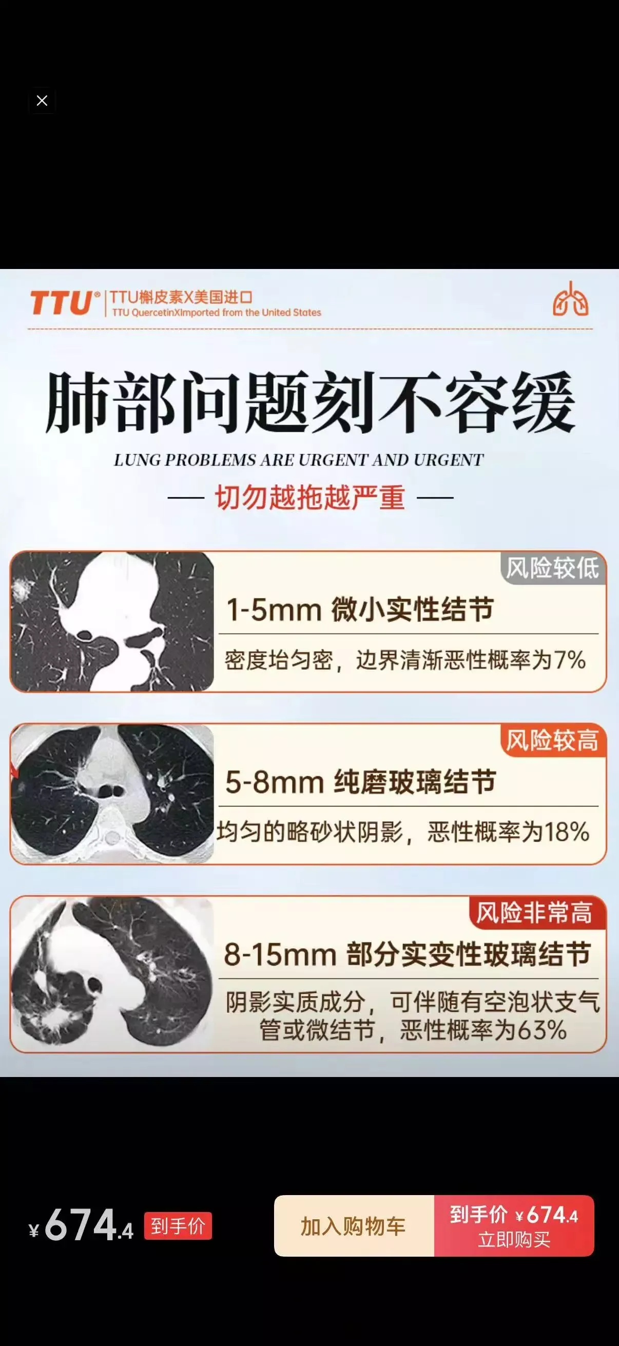 肺结节有相应的风险评估手段,我不是让你完全不管,但注意:没有任何指南会推荐服用槲皮素、草本补充剂等产品,因为它没用。