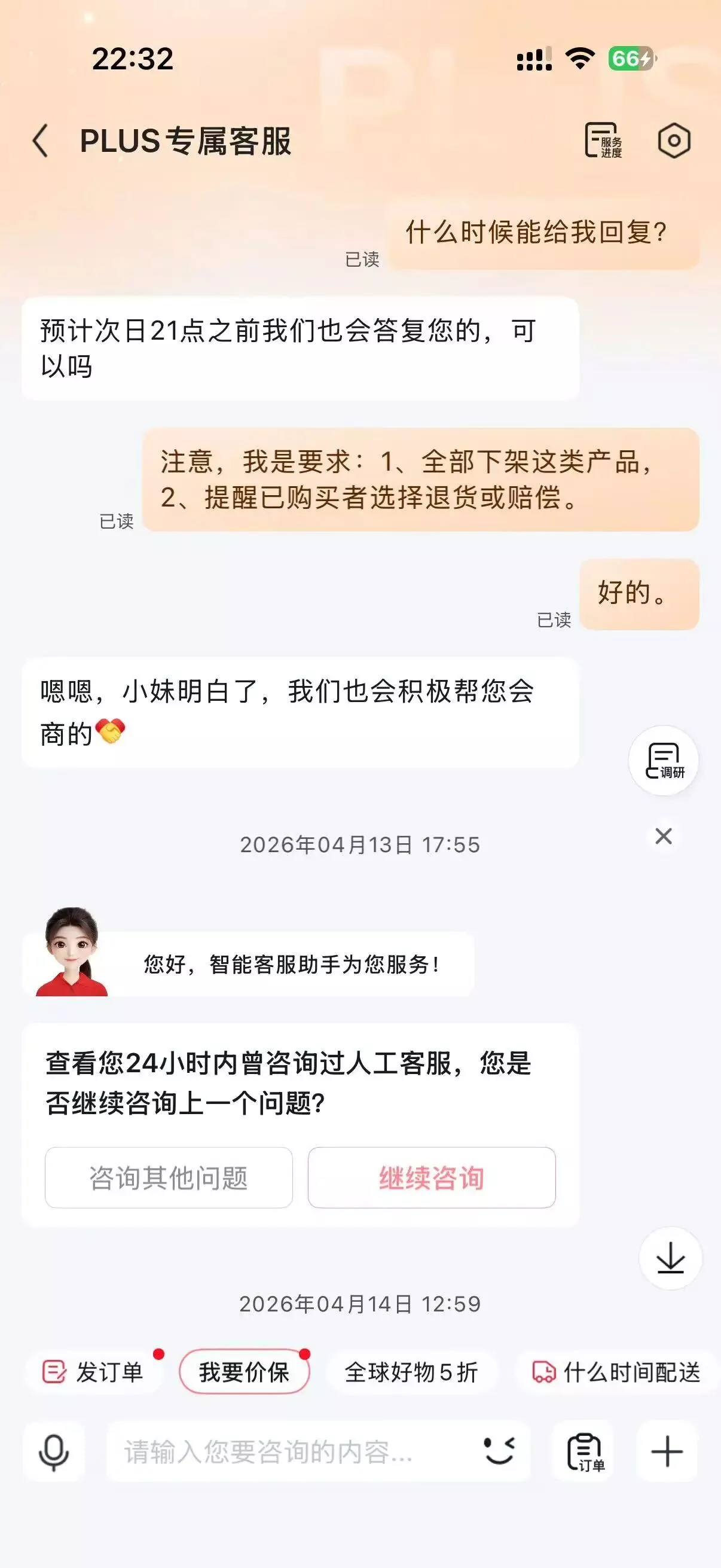 整个过程我感觉他对要求“下架全部这类产品”和“提醒消费者退货退款”有压抑的怒气,似乎这是非分的要求——但我的感受不一定准确,我也无意追究一个专员。
