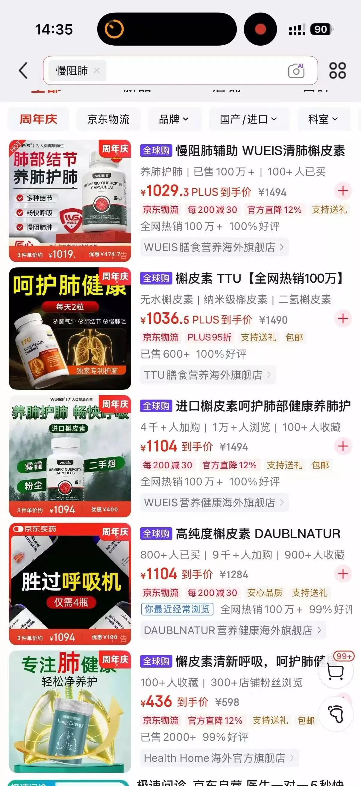搜索“慢阻肺”排前面的都是这类“营养膳食补充剂”,请问:京东能证明这是自然搜索的结果而非竞价排名吗?