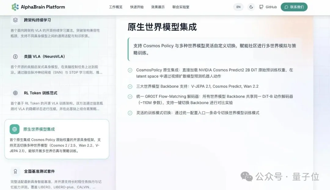 AlphaBrain Platform在这一块做了比较系统的工程化工作:把CL从“单模型上的研究玩具”推向多架构可复现的对比平台。