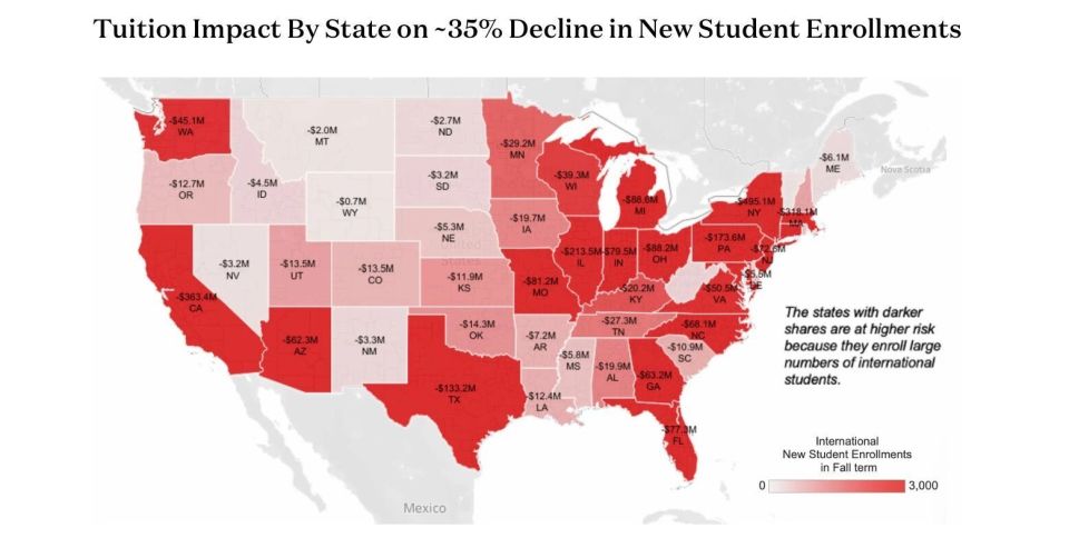 报告指出,除了直接的经济损失,这些趋势还引发了更深层的长期隐忧。国际学生人数的减少,意味着对科研、创新及校园多元化贡献的削弱,同时也导致流入美国劳动力市场的、具备全球化视野的受训人才储备日益萎缩。随着竞争对手国家持续强化其吸引并留住国际学生的策略,美国不仅面临短期的经济损失风险,更面临在全球人才市场中竞争力下滑的严峻挑战。