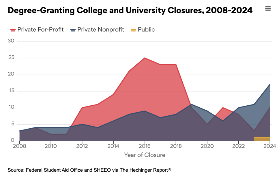 ▪︎过去十多年中,数百所大学消失,影响超过百万学生