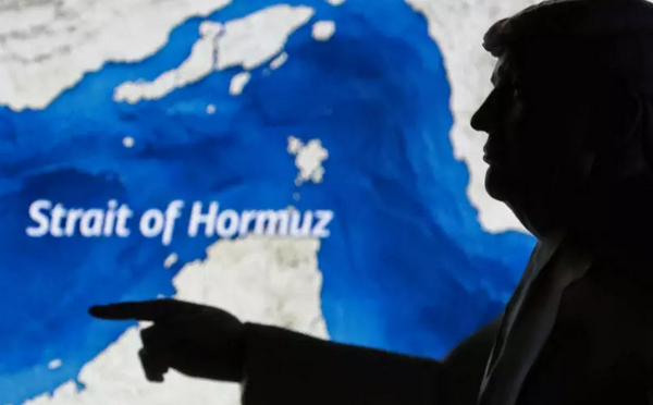Ảnh minh họa : Bản đồ eo biển Ormuz và bản in 3D mô phỏng tổng thống Mỹ Donald Trump, 23/03/2026. REUTERS - Dado Ruvic