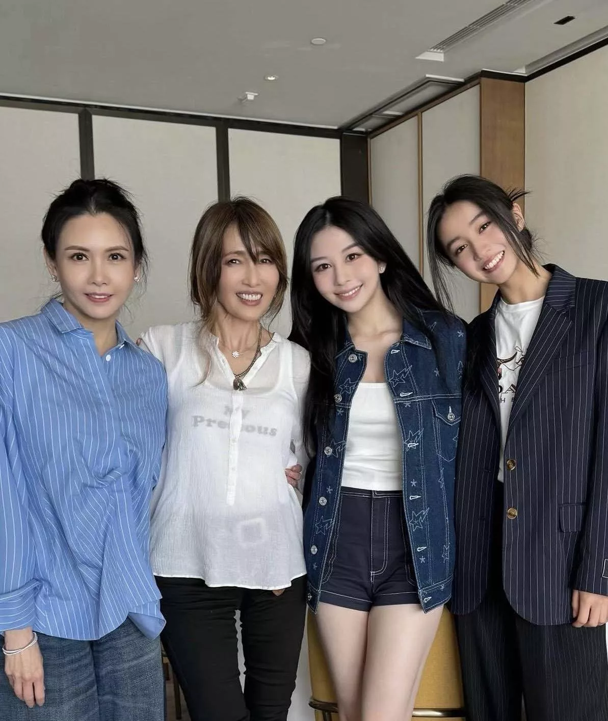 六天后的4月20号,邱淑贞和工藤静香带上各自女儿在香港一起吃饭,照片传出来以后,大家看到沈月抱着木村光希,两个人头贴着头,看起来就像亲姐妹一样,木村光希个子高,穿着格子西服外套,沈月稍微矮一点,穿的是牛仔热裤配上小白鞋,邱淑贞穿了蓝色竖条纹衬衫和牛仔裤,工藤静香则是一件白色透纱衬衫,头发染成板栗色,妆容很淡,整个人显得挺放松。