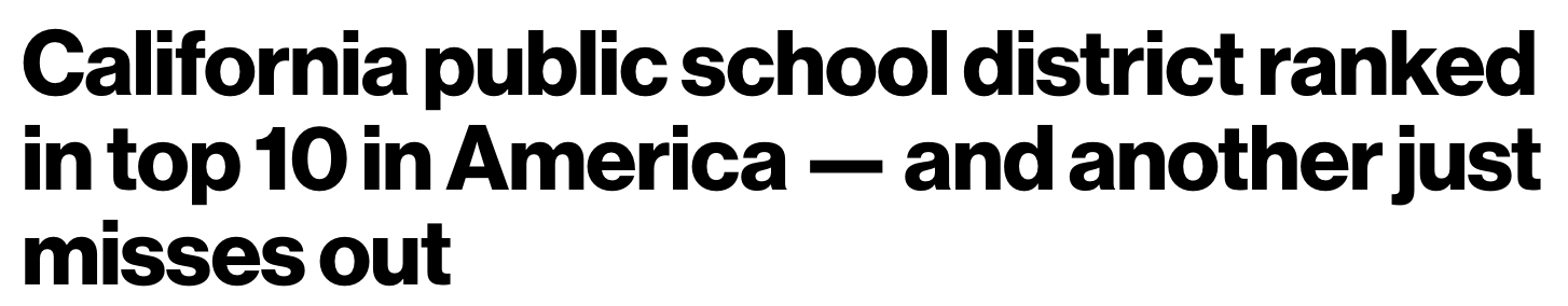 除了上述两大“领头羊”,加州还有三个学区进入了全美Top 25的精英阵营,其中两个正是湾区老牌的“顶流学区房”地段: