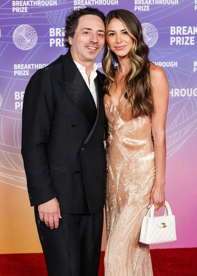 谷歌联合创始人谢尔盖·布林,也穿了隆重的双排扣,和盖茨一样敞着领子,感觉像是随便租了一身西装过来,主打一个:我是大佬,我不在乎。