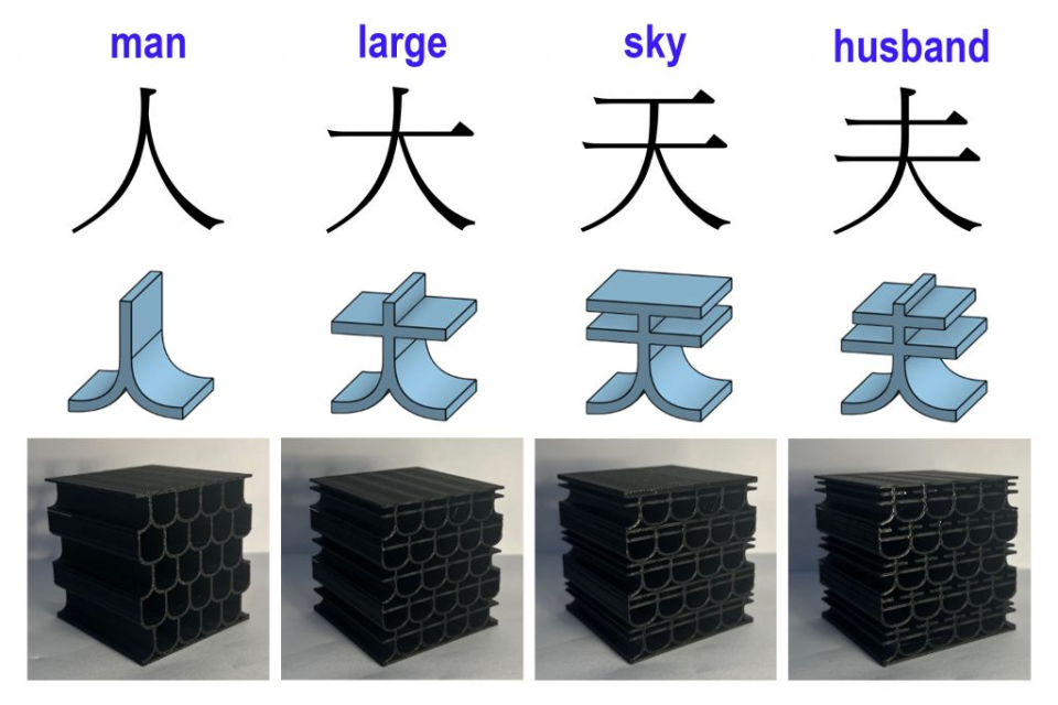 为何选择汉字?论文的通讯作者、爱丁堡大学工程学院的帕尔维兹・阿拉姆(Parvez Alam)副教授解释道:“某些汉字具有强烈而独特的几何特征,从直觉上就‘感觉’到,它们有潜力展现出独特的力学性质和行为。”