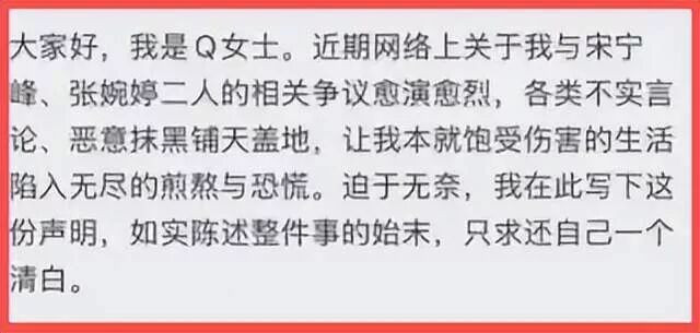 咱来简单复盘一下前情提要。这位Q女士直接开大,实名爆料说自己跟宋宁峰有一段不为人知的露水情缘。