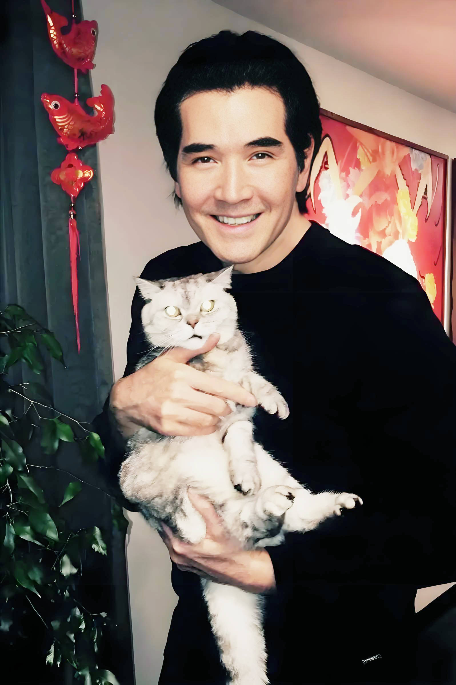 费翔这几年在伦敦生活,只要在家里,他与宠物猫形影不离,将它当作自己的另一个孩子养。