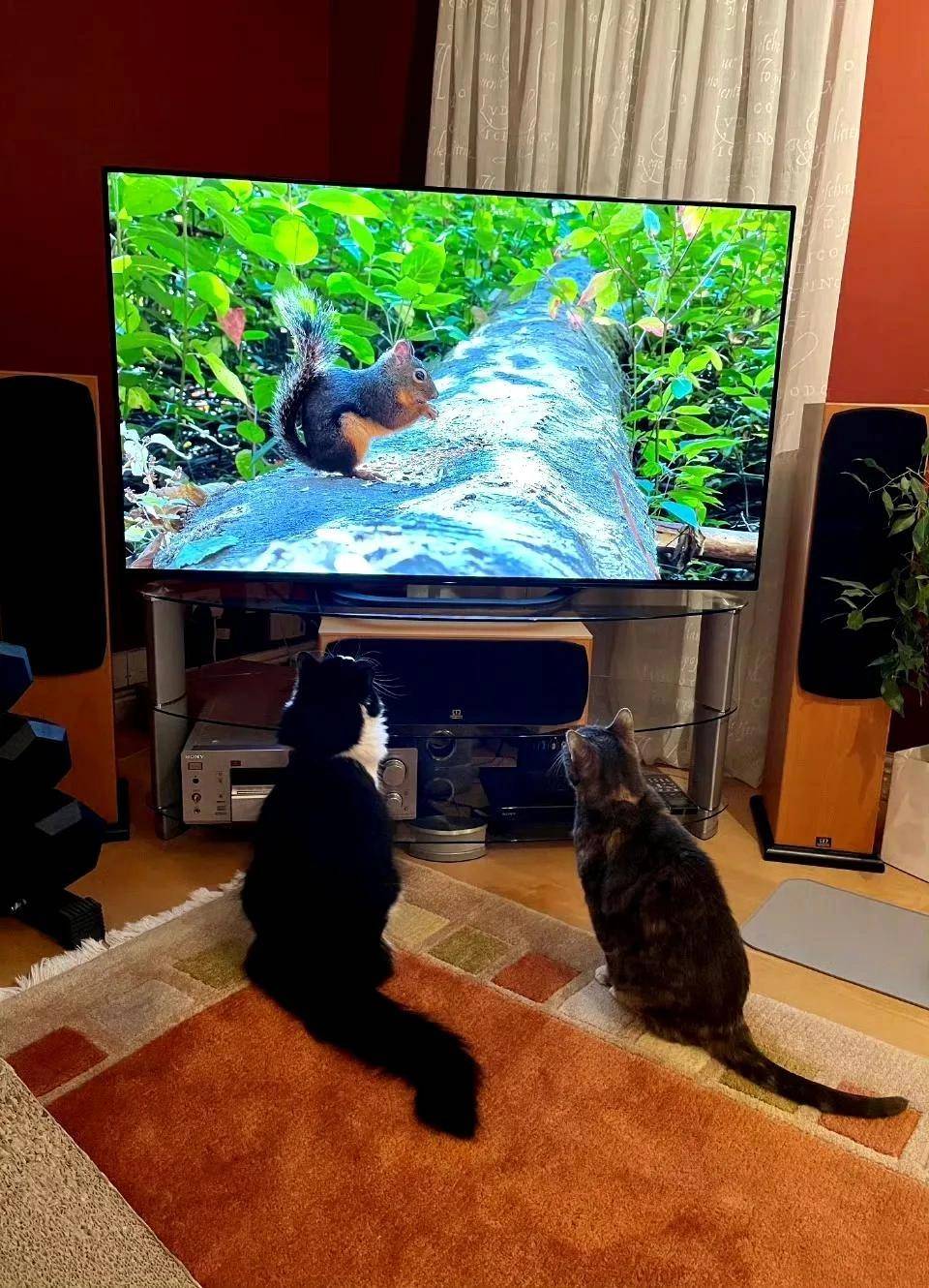 费翔让猫咪看电视