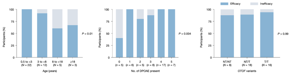 第三,基因突变类型。它会影响行为学测听阈值的恢复程度,但不影响治疗是否有效。