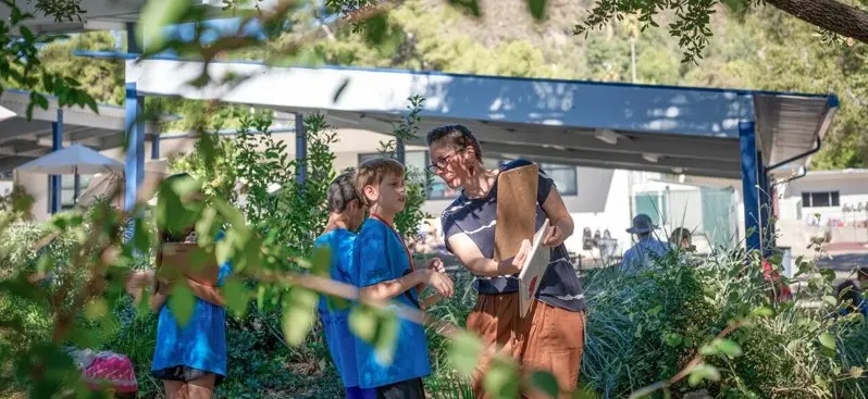 加州的拉肯亚达联合学区(LCUSD)位居全美最佳学区前列,被家长赞誉其教师优秀、学生积极上进。图为该学区一学校的教师与学生互动情况。(LCUSD官网)