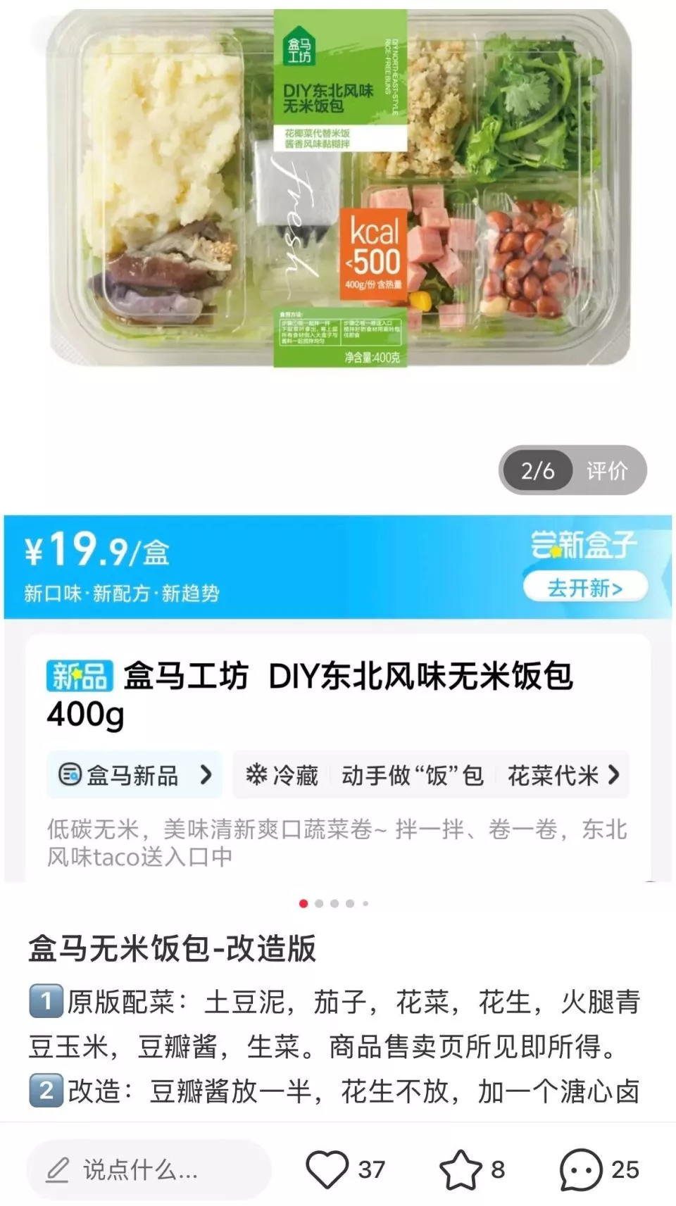 整个饭包里只有土豆作为主碳水,极大地降低了总热量,一整份无米版饭包的热量在400卡左右,但饱腹感却远超一碗西式沙拉。土豆泥自带高膳食纤维,还能抗饿更长时间。至于味道,自然无可置疑,毕竟这些食材加在一起,根本就没有难吃的空间。