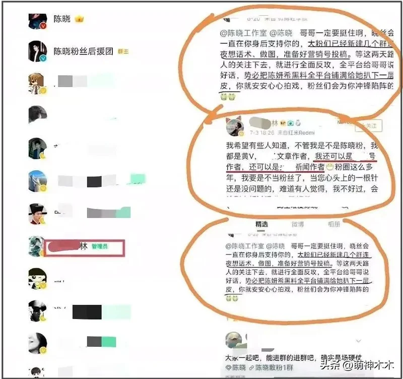 很快,这位黑粉的过往言行也被扒出,有网友晒出她与陈晓、陈晓粉丝后援团待在一个群聊的截图,她在其中担任管理员,还曾说过不管是不是陈晓粉丝都会针对陈妍希,要当她心头的针。而且,有截图显示陈晓粉丝多次发文表示全网铺陈妍希黑料,目的是维护陈晓的形象,大粉们都做好了安排,可以简单看出陈晓粉丝对陈妍希的态度。所以,陈晓对陈妍希婚后被粉丝针对的现象不知情吗?