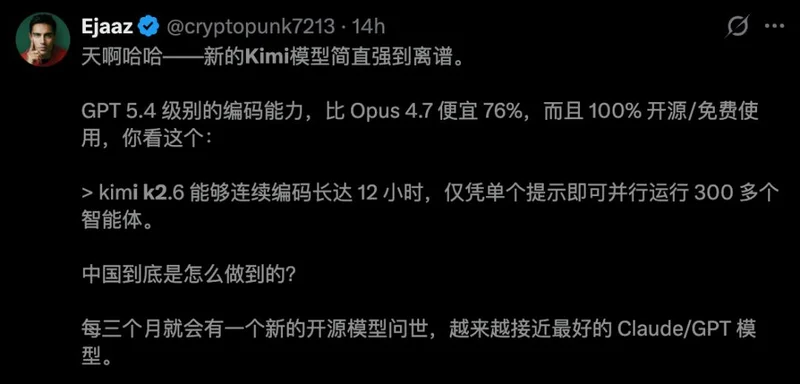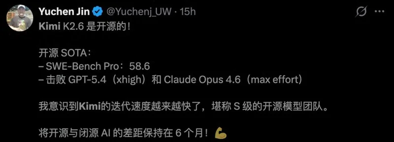 4月20日深夜,Kimi K2.6出道即开源。