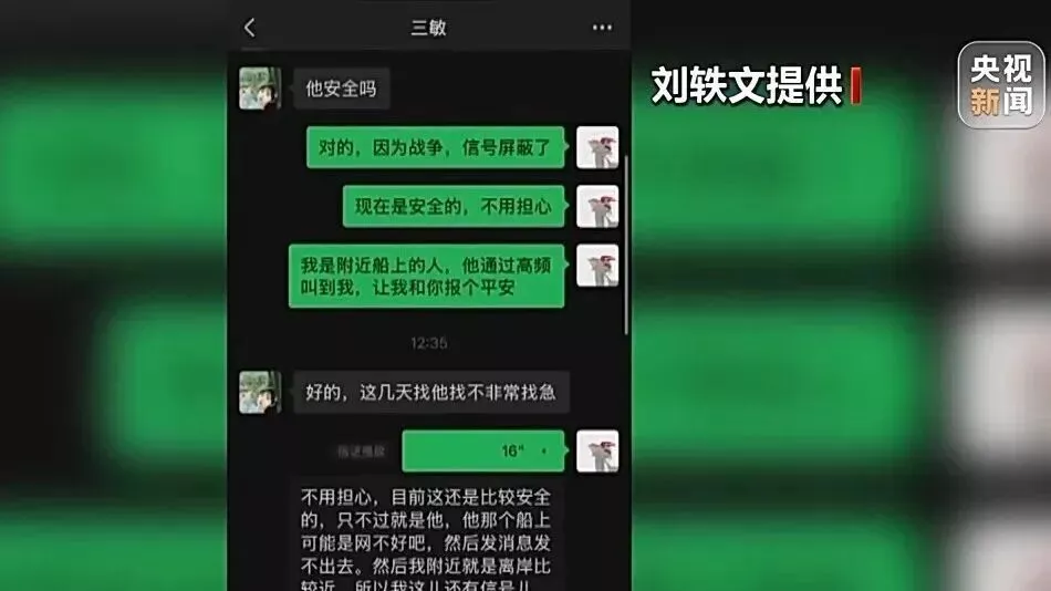 通过船上电台了解到有一艘船信号被屏蔽,刘轶文帮助船员与家属取得联系