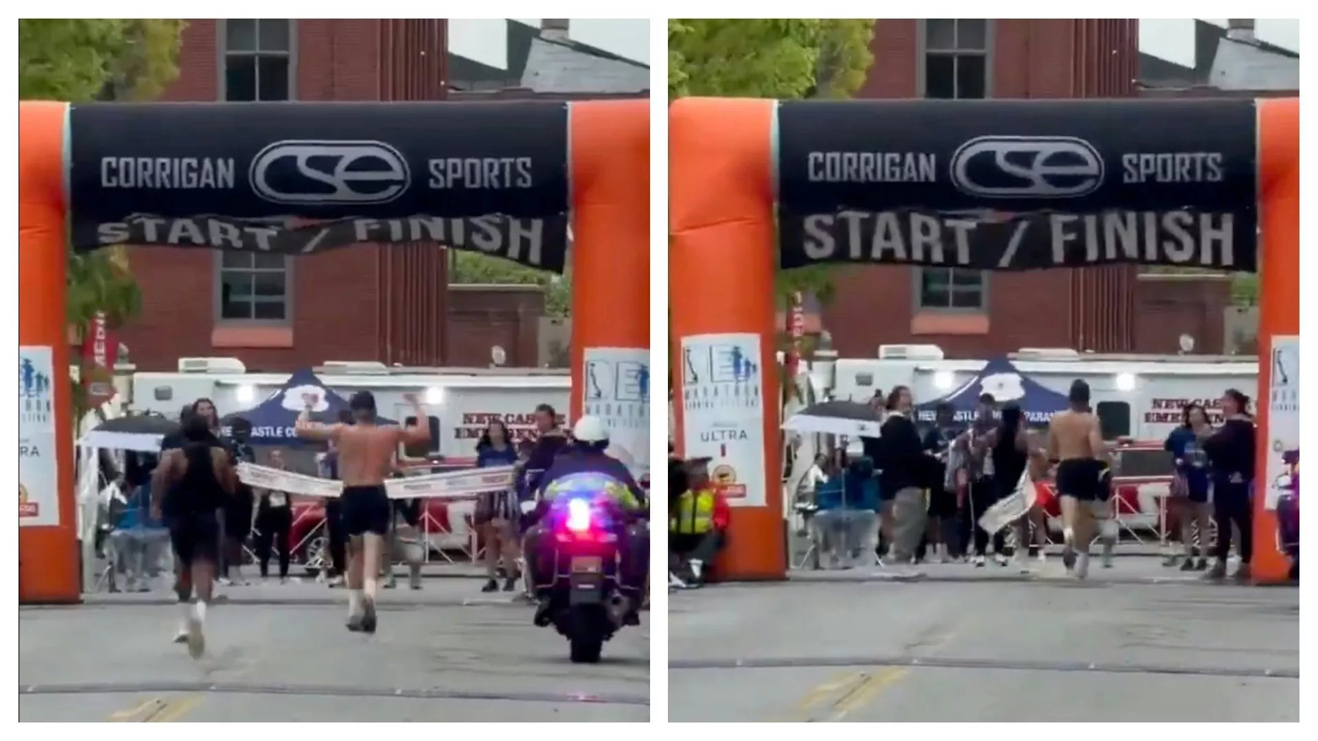 美国一场马拉松赛事在终点前上演戏剧性一幕: