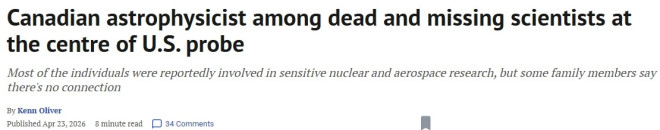 美加科学家离奇失踪死亡,FBI调查nationalpost