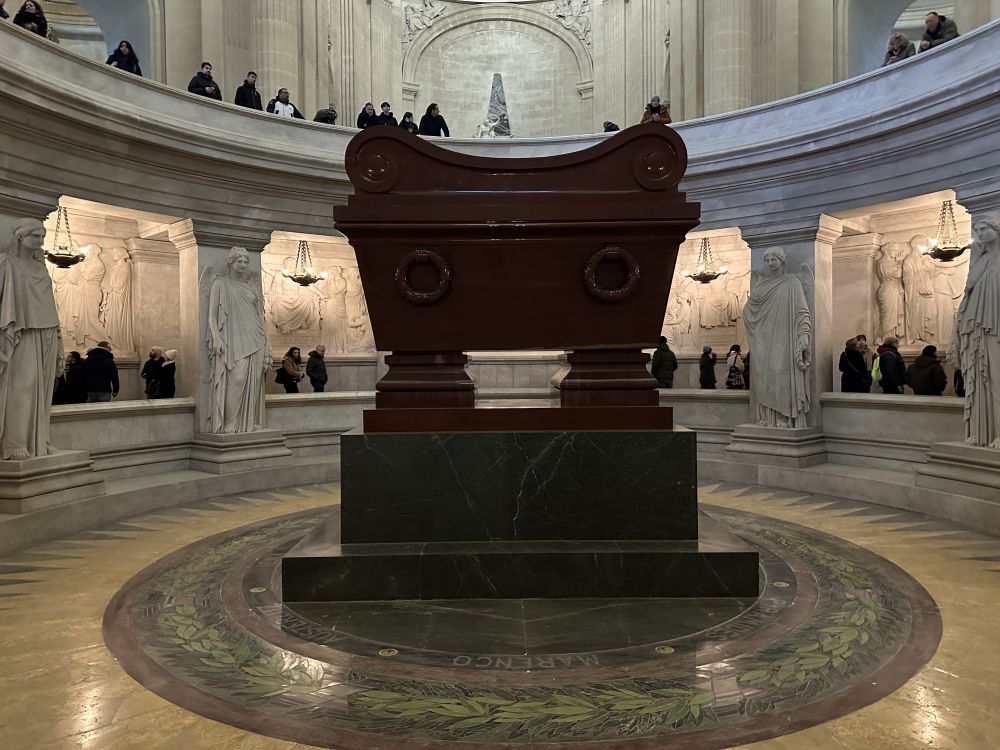 拿破仑石棺在教堂地下一层,是开放的,与穹顶遥相呼应。