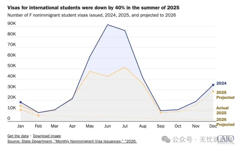 留学生签证在2025年前八个月比上一年同期下降了40%,这是美国近些年来,除了疫情期间的特殊原因,留学签证下降最多的一次。