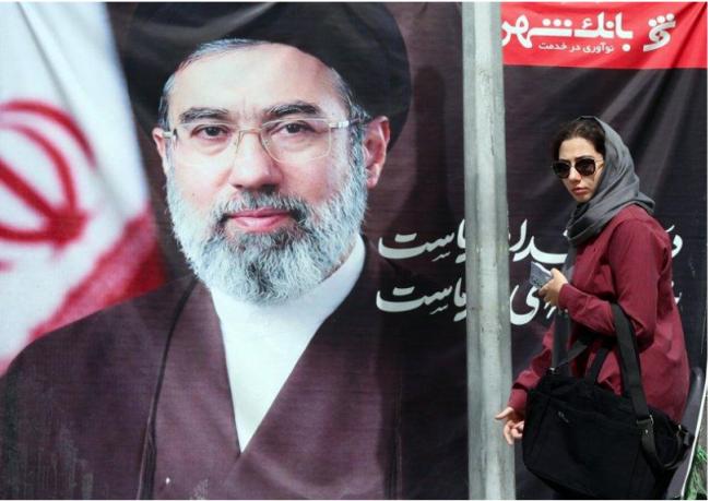 德黑兰街头挂著穆吉塔巴的巨幅肖像。(欧新社)