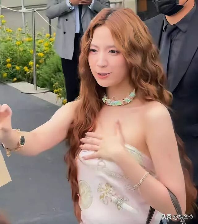现场接受采访时,她也有点放不开,小动作不断,眼神忽闪忽闪,手指不停轻碰裙摆,看上去特别紧张,少了点大场面该有的从容体面。