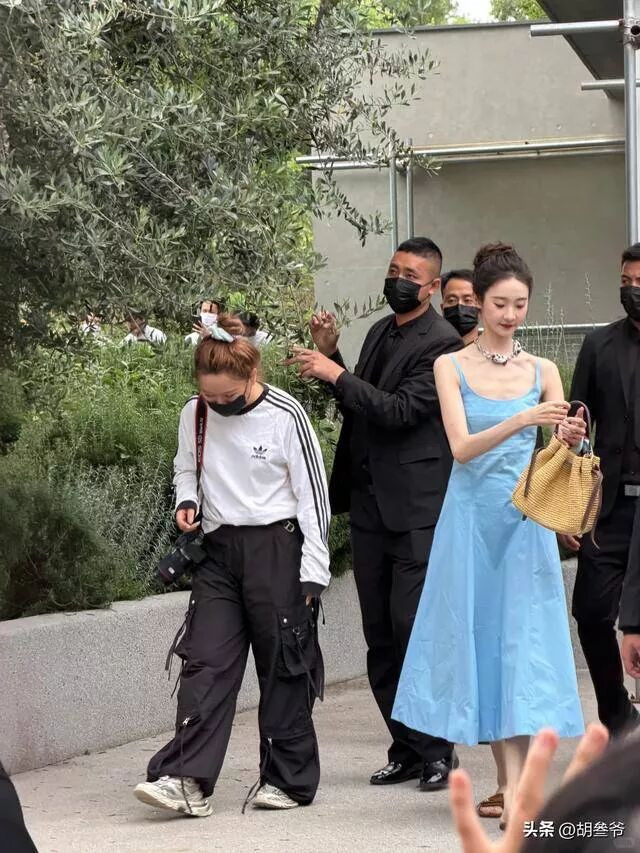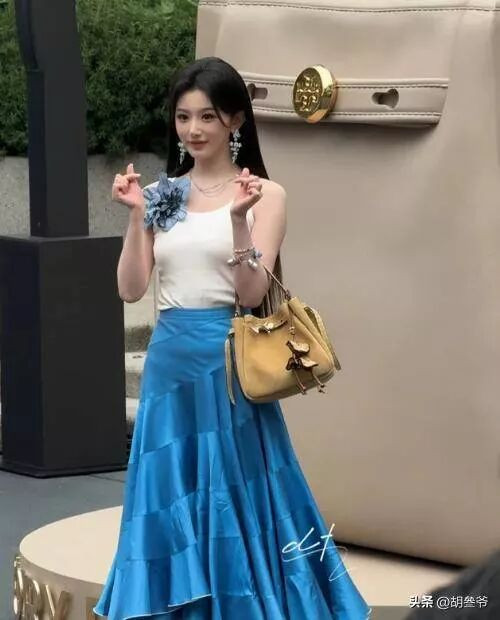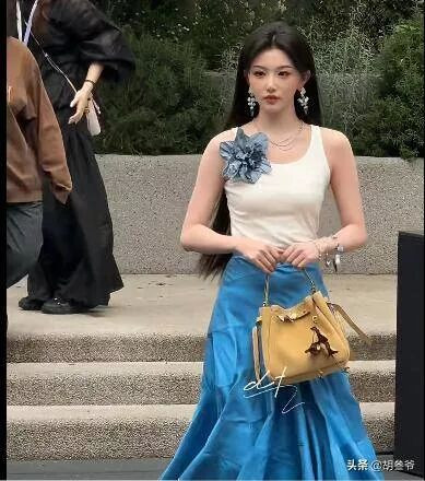 对比她之前在ELLE风尚大典上的水蓝色纱裙、赫本风白裙,简直判若两人。