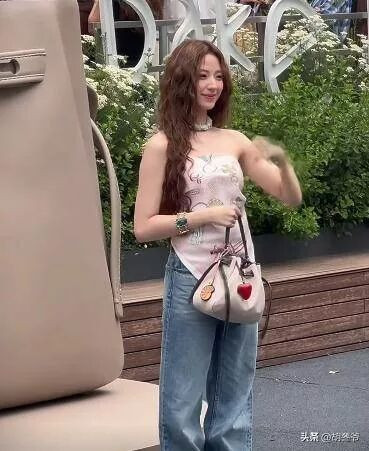 复古印花裹胸本身就挑人,搭配拖地牛仔裤,再加上显乱的羊毛卷,几个雷点凑在一起,再好看的五官也救不回来。