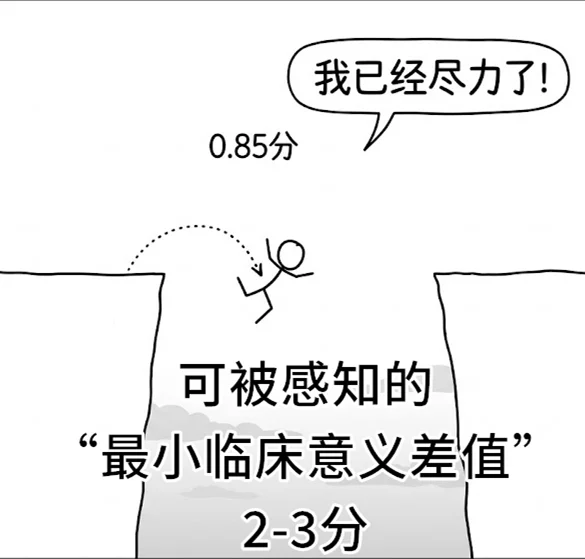 临床医学中有一条公认的及格线,叫“最小临床意义差值”,意思是一种药至少要让分数改善多少,患者和家属才能在日常生活中真正感觉到“他好像好了一点”。