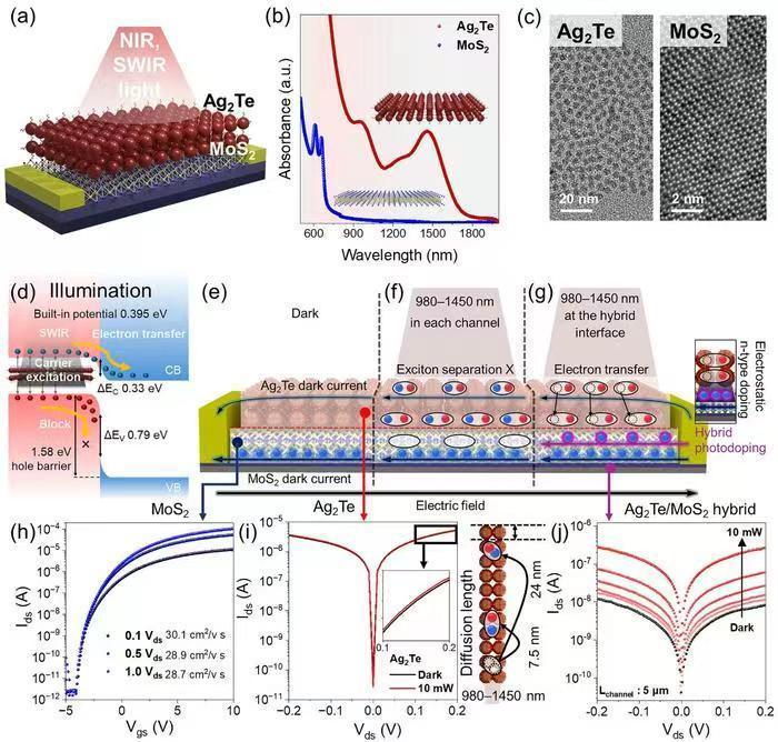 传统上,能够探测短波红外波段的传感器多采用锑化铟等化合物半导体材料,虽性能优良但成本极高,且难以在大面积器件上扩展。为解决这一难题,研究团队设计了一种混合光传感器架构,将具有高吸光特性的Ag2Te量子点与具备快速电荷传输能力的MoS2二维半导体相结合。这种结构充分发挥了两类材料的优势,二维半导体有效弥补了量子点电荷迁移率不足的缺点,从而提升了器件整体性能。