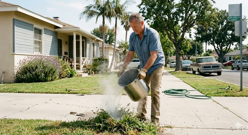 沸水除草本质上是一种“物理打击”,它靠高温瞬间破坏植物的细胞组织,让杂草失去水分和养分,从而自然枯萎。