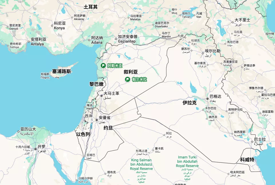 我们行驶在两千多年前将西方文明带往中国的古丝路之上。昔日,商队沿着“大马士革—帕尔米拉—杜拉欧罗波斯”的路线横穿荒漠,向东越过伊朗高原,沿河西走廊抵达长安,它也曾是叙利亚连通东西腹地的重要通道,连接首都与东部幼发拉底河流域的农业区和旅游区。可十余年的内战,彻底改写了这条道路的性质——它不再是流动与交流的象征,而更像一条被战争反复碾压过的伤口。