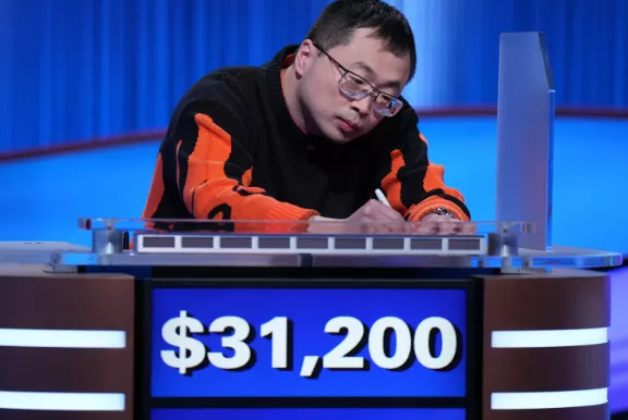 如果说还有什么细节能体现他的实力,那就是他此前创下的“科里亚特得分”纪录,单场42,400美元,这一成绩甚至超过了现任主持人 Ken Jennings 在2004年创下的表现。