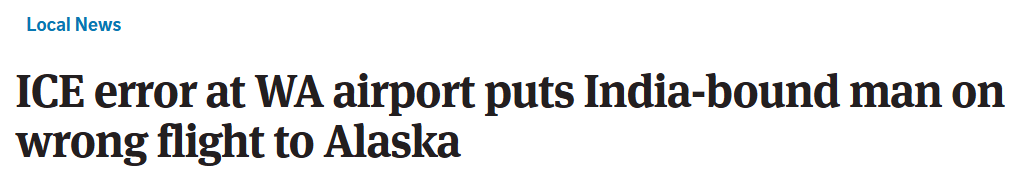 这名被送错的男子为25岁的Rakesh。他本应搭乘飞往纽约的航班,随后转机回到家乡印度。然而,在ICE特工的“护送”下,他登上的却是一架飞往阿拉斯加锡特卡(Sitka)的飞机。