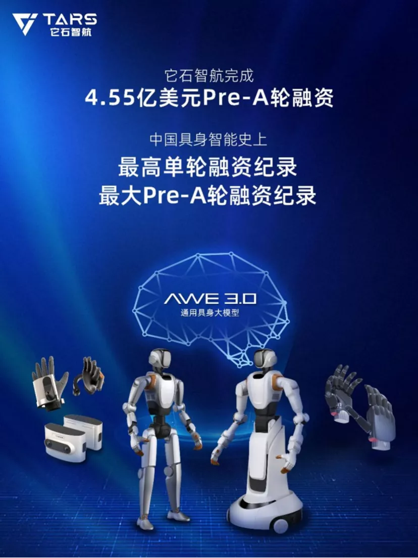 2025年2月才成立的它石出道不算早,但其在成立后的三个月内就完成了2.42亿美元天使轮融资,打破了中国具身智能有史以来的天使轮融资纪录。