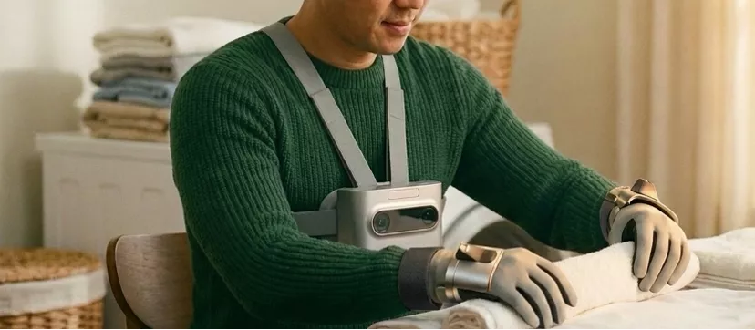 人类操作员穿戴它石自研的SenseHub套件在真实场景中干活,由套件中的传感器记录数据,如此记录的是人类肢体最自然的加速度、抓取力和空间轨迹,这些数据没有经过机器人硬件的“污染”,保留了动作的原生高频细节。